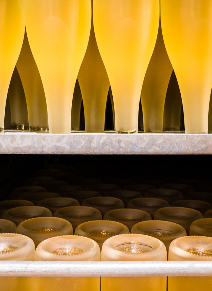 During the ageing on lees, a layer of sediment builds up on the walls of the bottle. Once this stage has finished, the layer must be removed. The final part of the ageing process, therefore, is that