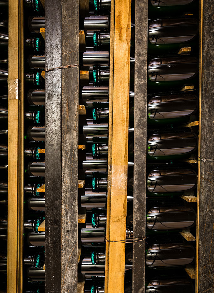 The tirage process involves adding a solution of sugar and yeast to the wine, which is immediately bottled. The bottles are sealed with crown caps, which are then ordered and stacked in the wine cellar in a horizontal position. They stay there for a minimum period of 18 to 30 months. Natural fermentation creates carbon dioxide inside the bottles (secondary fermentation), which consequently increases the pressure to seven atmospheres. It is precisely during this phase that the aromatic complexity and taste profile of the wine develop