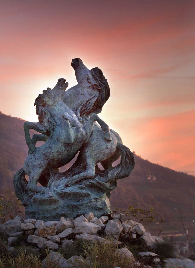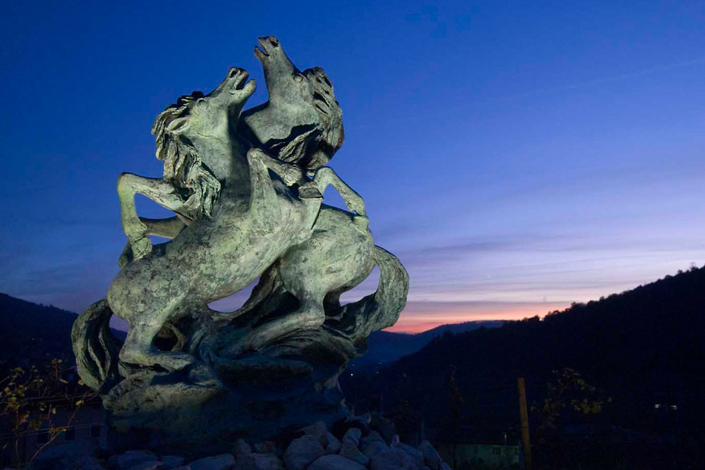 Una scultura in bronzo creata per la cantina, è il segno lasciato da Aligi Sassu, pittore e scultore italiano di grande fama e cultura: i “Cavalli innamorati”. Oggi l'opera è installata in posizione dominante di tutta la valle e dei vigneti sottostanti la tenuta. Quello con l'artista è un connubio segnato da profonda amicizia con la famiglia, che, negli anni, si è espresso in mostre, pubblicazioni di opere e reciproci meravigliosi progetti artistici.