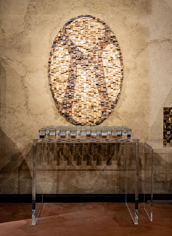 Una vera e propria opera vivente in continua stimolazione dei sensi, firmata Luciano Molinari, artista ebanista contemporaneo, con laboratorio creativo a Milano, eccezionalmente capace di trasformare il legno in una istantanea. “Opera Sensoriale”, nella barricaia Majolini, è un’opera originale nata nel dicembre 2013 , realizzata con 199 varietà di legni, dai più comuni ai più pregiati, provenienti dai cinque continenti.