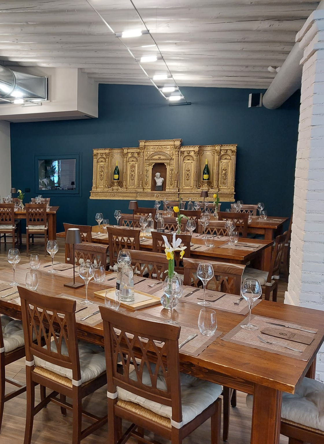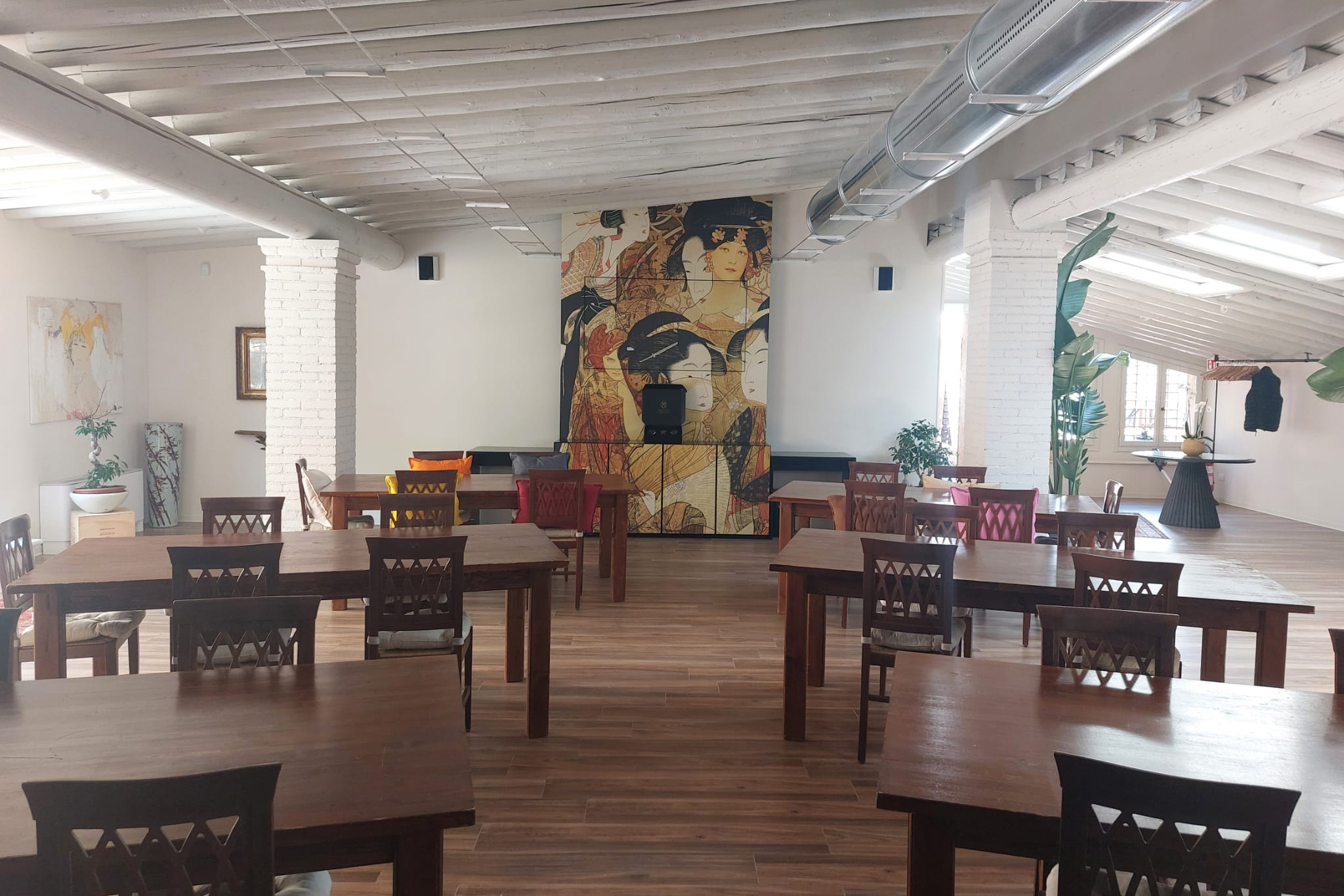 Il salone può essere configurato in base alle esigenze dell’evento: da riunioni e conferenze a cene aziendali e incontri più conviviali. È uno spazio che si adatta, mantenendo sempre un’atmosfera rilassata e ordinata, dove il tempo sembra scorrere con un ritmo diverso