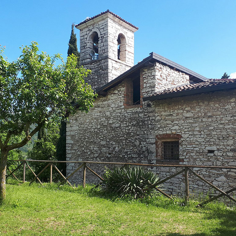 聖地は、アルプスへと続く丘陵地帯の起点、セレッツァータ・ディ・オーメ 村(ブレシア)の北側に位置しています。この教会は古い教会を修復した もので、おそらくローデンゴのクルニア修道士によって行われたもので、 他の宗教的、軍事的な建物が先にありました。1510 年に現在の形に改 修されました。
